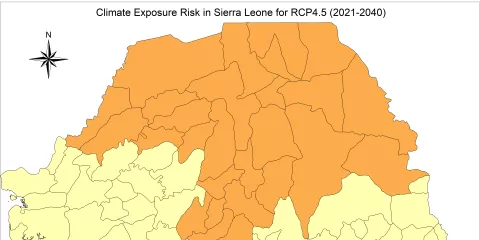 The maps assess the exposure of the agricultural sector to extreme climate events, including droughts, floods, and heat waves. The outputs were calculated using climate indices derived from 21 models downscaled to 25km resolution covering two climate scenarios (RCP4.5 and RCP8.5) and different periods in the future. The exposure risks are categorized into 3 categories 'low, medium and high'.
